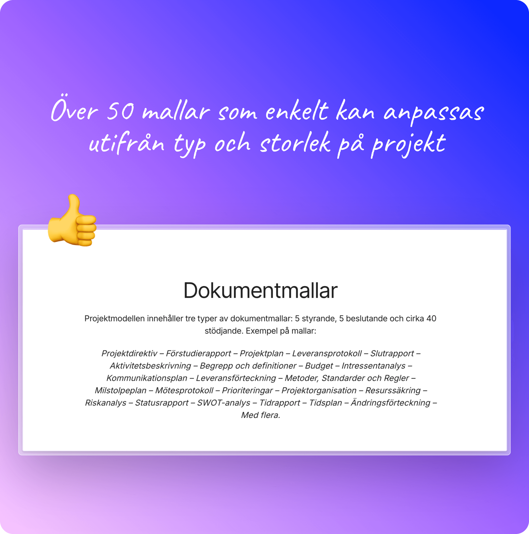 Projektmodell med 50 dokumentmallar