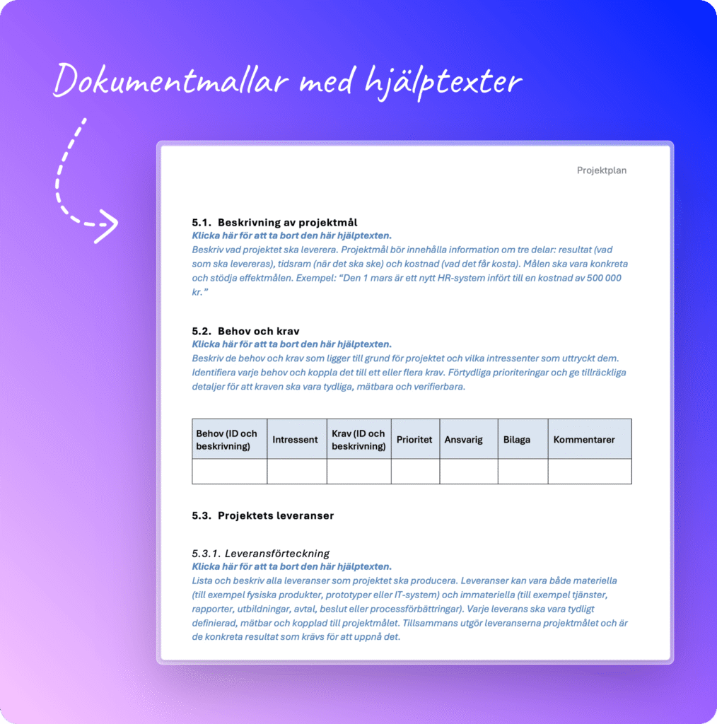 Lättanvända dokumentmallar för styrning och administration av projekt från start till mål