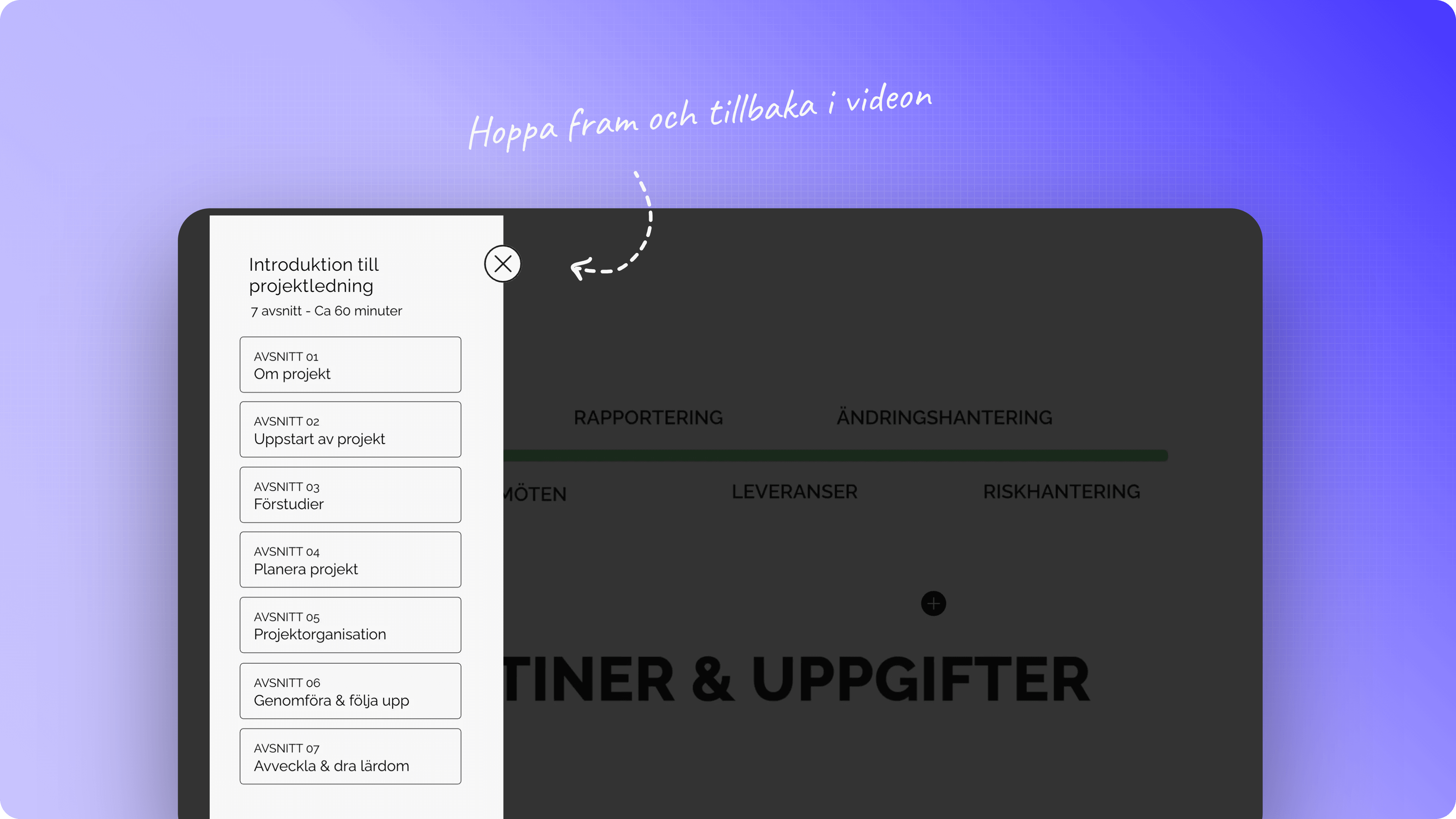 Du får också insikt i olika projektroller och deras ansvar. Kursen är utformad som en interaktiv video.